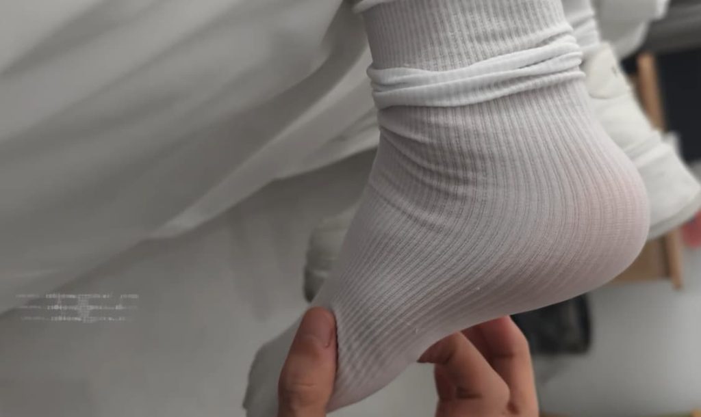 老哥怀着开盲盒的心态颤抖着脱下她的鞋子,小白袜里面还穿着丝袜,不知道算不算是个惊喜了